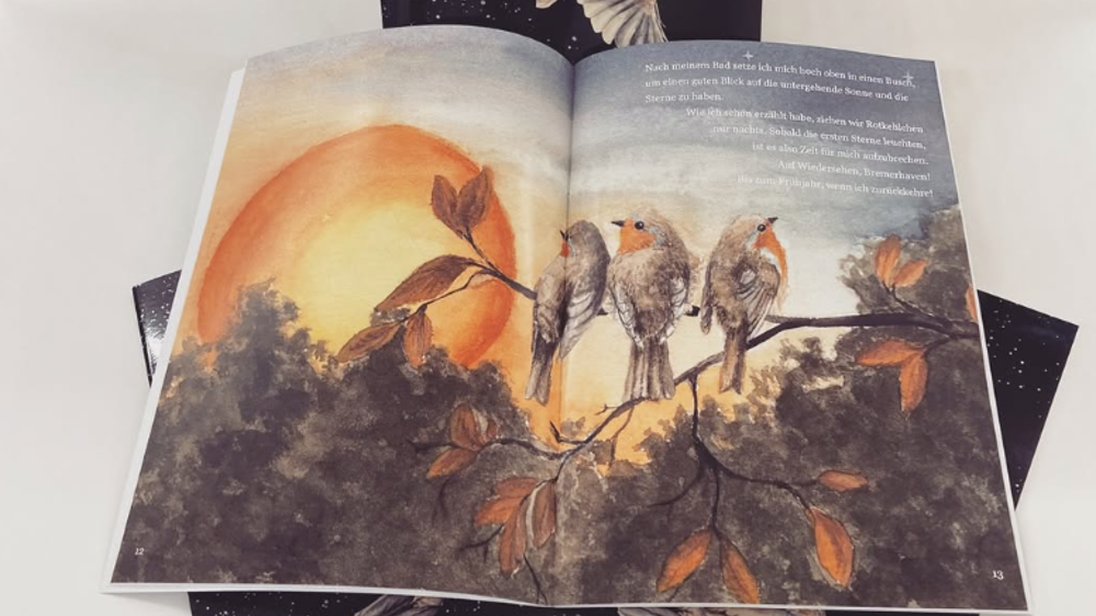Miriam has contributed to a new children’s book that tells the story of the European robin Ina and her remarkable migratory journey. The book combines scientific insights with engaging storytelling and beautiful illustrations, making complex biological concepts accessible to young readers. While Miriam provided the scientific background, the narrative was written in collaboration with Beate Holm-Grünberg and Angelika Einwich and accompanied by illustrations from Corinna Langebrake. The book is currently available in german. (Image: Druckerei Söker)